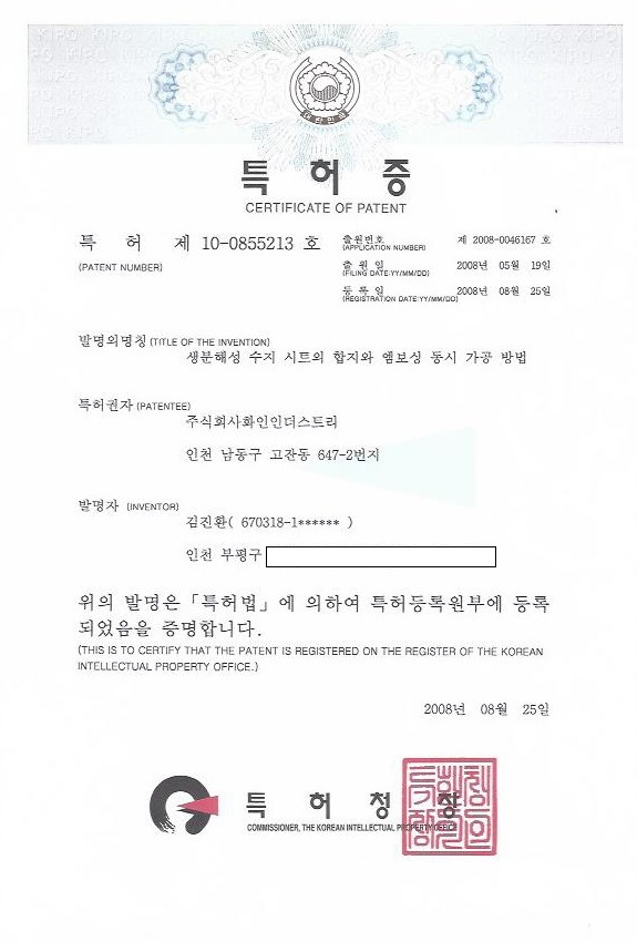 특허증-생분해성수지시트의합지와엠보싱동시가공방법 페이지 정보 작성자 최고관리자 작성일17-02-01 13:14 조회1,345회 댓글0건 관련링크 본문 특허증-생분해성수지시트의합지와엠보싱동시가공방법(2008.08.25) 댓글목록 등록된 댓글이 없습니다. 이전글 다음글 목록