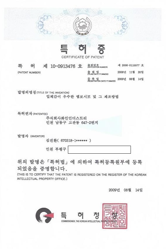 특허증-입체감이우수한엠보시트및그제조방법 페이지 정보 작성자 최고관리자 작성일17-02-01 13:15 조회1,341회 댓글0건 관련링크 본문 특허증-입체감이우수한엠보시트및그제조방법(2009.08.14) 댓글목록 등록된 댓글이 없습니다. 이전글 다음글 목록