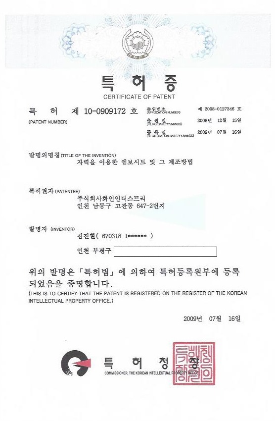 특허증-자력을이용한엠보시트및그제조방법 페이지 정보 작성자 최고관리자 작성일17-02-01 13:15 조회1,342회 댓글0건 관련링크 본문 특허증-자력을이용한엠보시트및그제조방법(2009.07.16) 댓글목록 등록된 댓글이 없습니다. 이전글 다음글 목록